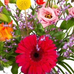 Dit schattige gemengde boeket heeft prachtige roze en paarse tinten. Het boeket creëert meteen een gezellige sfeer in huis. Bovendien is het gemengde boeket geschikt voor verschillende gelegenheden. Feliciteer, bedankt of verstuur zomaar dit prachtige handgebonden boeket en verras de ontvanger! * Exclusief accessoires en vaas